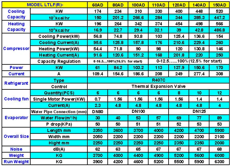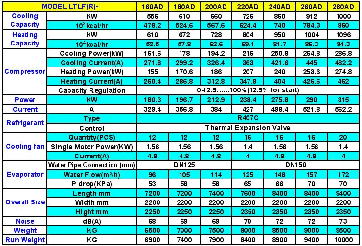Single Screw Compressor Air to Water Heat Pump Model: LTLF30AS-LTLF140AS Cooling Capacity: 87-500KW